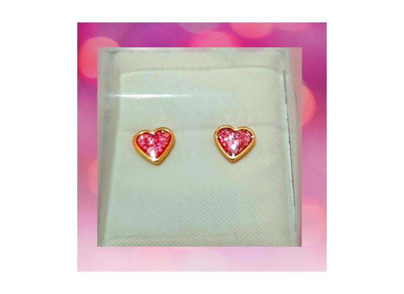 Brinco Infantil Coração Glitter Rosa (6X6mm) - Studex - Sensitive