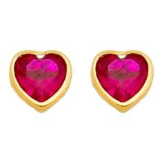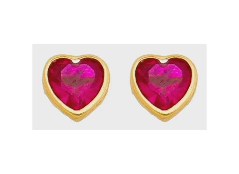 Brinco Infantil Coração Pedra Zirconia 4mm De Ouro 18k 750 Vermelho