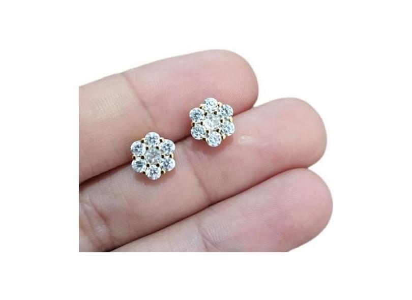 Brinco Infantil Flor Zirconia Folheado A Ouro - Dourado - De Castro Jo