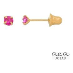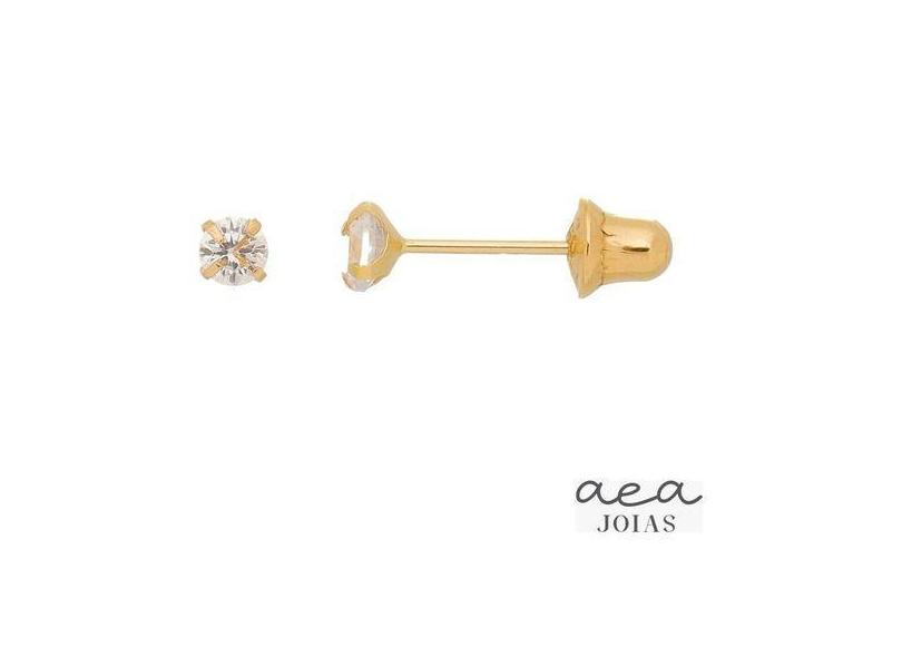 Brinco Infantil Zircônia 2,5mm Recém Nascido Bebê Ouro 18K - Aea Carib