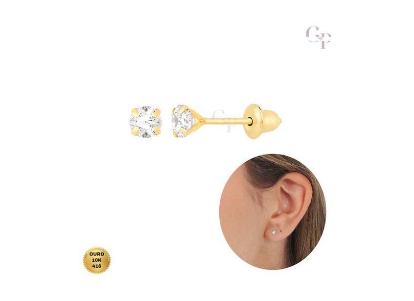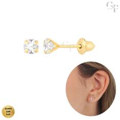 Brinco Ouro 10K Zircônia Branca 3mm Recém Nascido Infantil E Adultos C