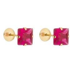 Brinco Ouro 18K Pedra Quadrada 5mm Infantil Adulto 2º Furo Zircônia Br