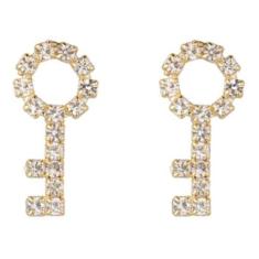 Brinco Pedra Strass Chave 2 Furo Daminha Infantil Pequeno - De Castro