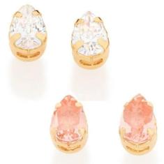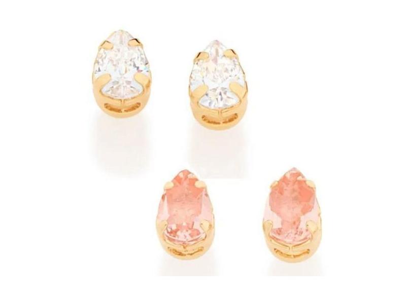 Brincos De Ouro 18K Femininos Segundo Furo Infantil Zircônia Gota Romm