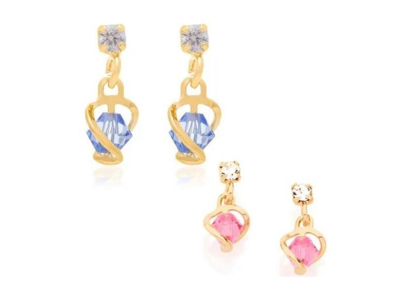 Brincos De Ouro 18K Femininos Zircônia Cristal Infantil Rommanel Pendu