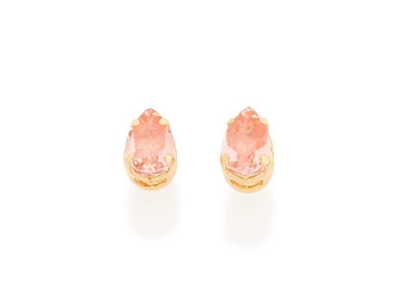 Brincos Rommanel Infantil Fol Ouro 18K 2 Zircônias 525929