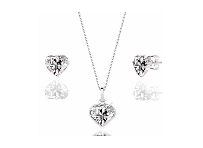 Colar Brinco Infantil Coração Zirconia Prata 925 Branco - Lojas La+Ny