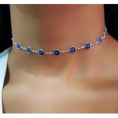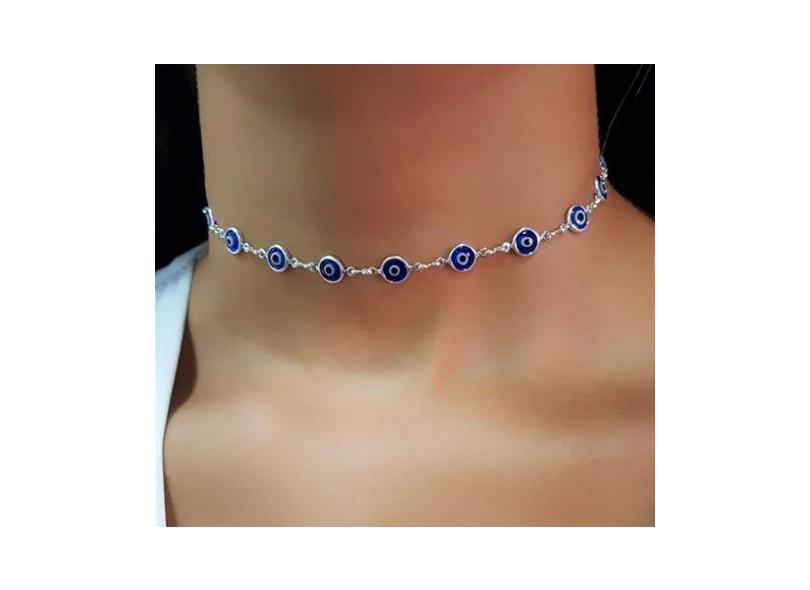 Colar Choker Feminino Adulto Infantil Olho Grego Azul / Cordão Proteçã