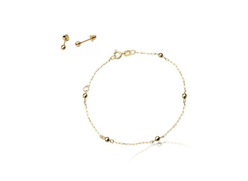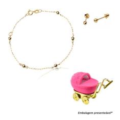 Conjunto Infantil Bebê Ouro 18K Pulseira + Brinco Bola 3mm - Agaprime