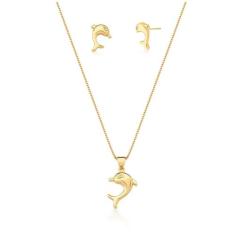 Conjunto Infantil Brinco E Colar Golfinho Banhado A Ouro - Tulerry Sem