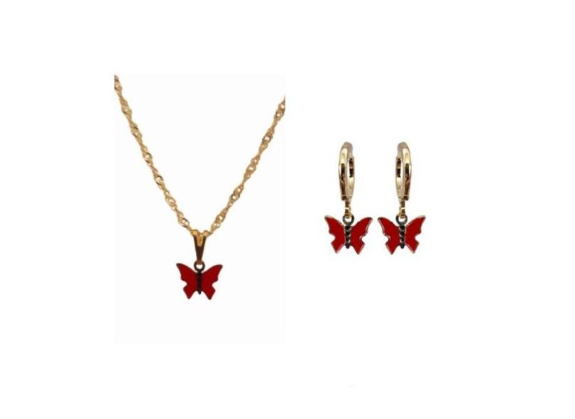 Conjunto Infantil Colar E Brinco Borboleta Folheado Ouro 18K Antialérg