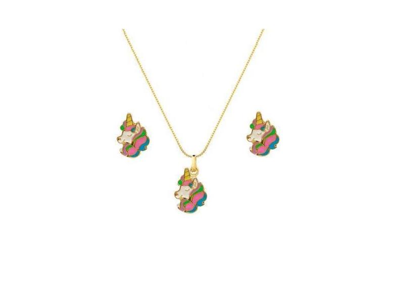 Conjunto Kit Infantil Brinco/Pingente Unicornio Banhado - Jhulias Joia