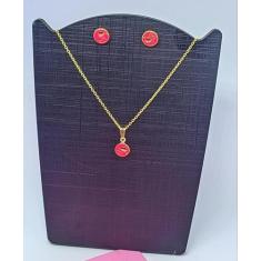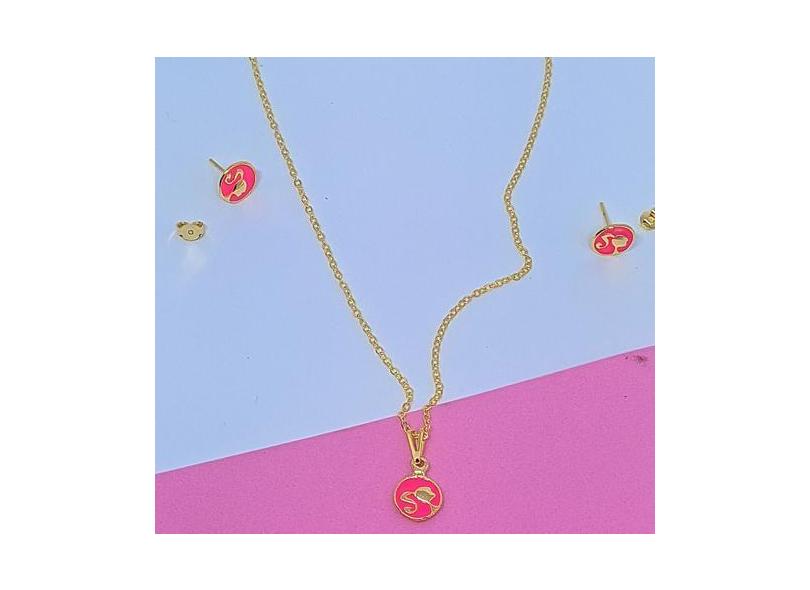 Kit Conjunto Colar E Brincos Infantil Barbie Girl Rosa Pink Folheado O