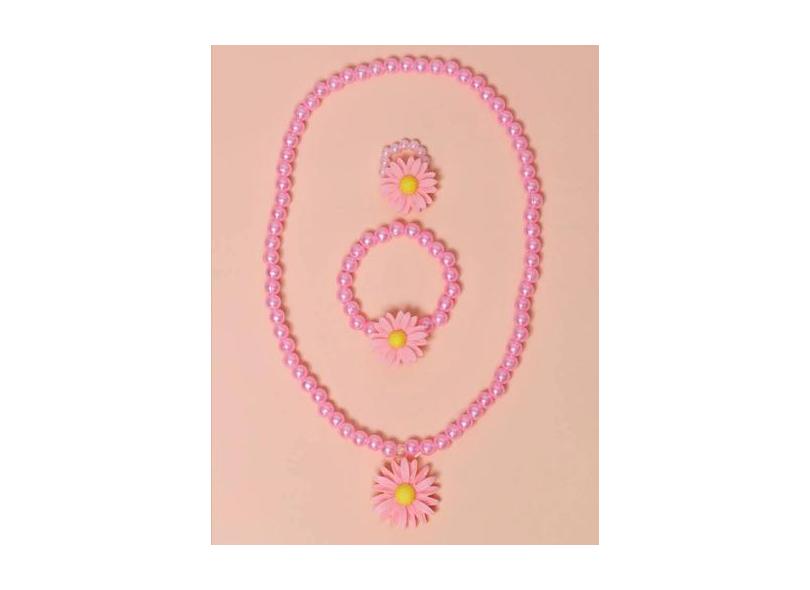 Kit Conjunto Infantil Colar E Pulseira Anel Miçangas Pérola Colorida P