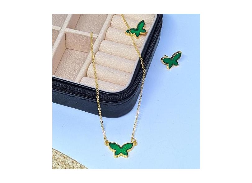 Kit Conujnto Colar E Brincos Feminino Adulto E Infantil Borboleta Pequ
