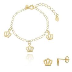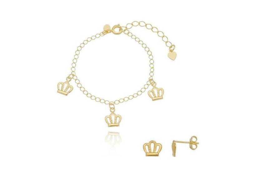 Kit Infantil Brinco + Pulseira De Coroa Banhado A Ouro - Jhulias Joias