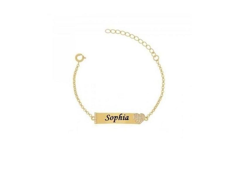 Pulseira Chapinha Infantil Coração Cravejado Banho De Ouro - Jhulias J