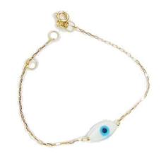 Pulseira Com Pingente De Ouro 18K Olho Grego 13cm Infantil - Elegancy