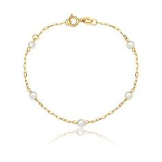 Pulseira Infantil Bebê de Pérolas Naturais Em Ouro 18k Com Regulagem