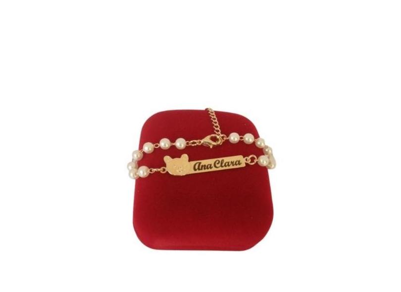 Pulseira Infantil Bebê Perola Nome Folheado A Ouro 18K - Gabby Luxo Jo