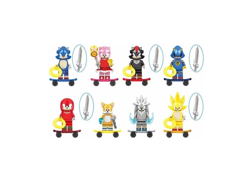 Boneco Blocos De Montar Sonic Tails Knuckles Silver Shadow