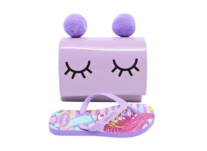 Kit Bolsa Infantil Pompom Delicada Cluth E Chinelo Criança Menina Esti
