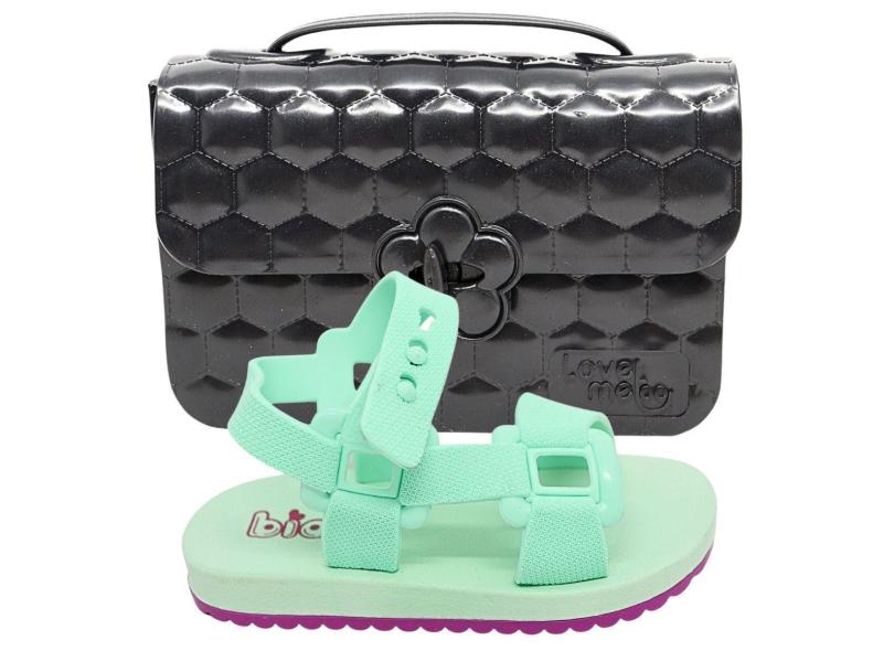 Kit Bolsa Infantil Preta Love Me Too Preta Moderna Sandalia Leve Confortavel Estilosa Antiderrapante-Feminino