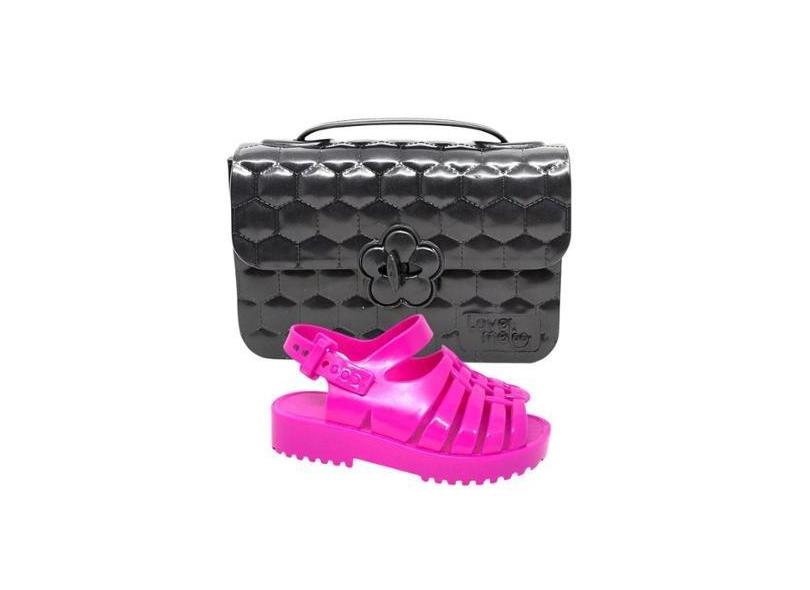 Kit Sandalia Aranha Menina Fofa Criança E Bolsa Infantil Preta Moderna Papete Leve Macio Confortavel-Feminino