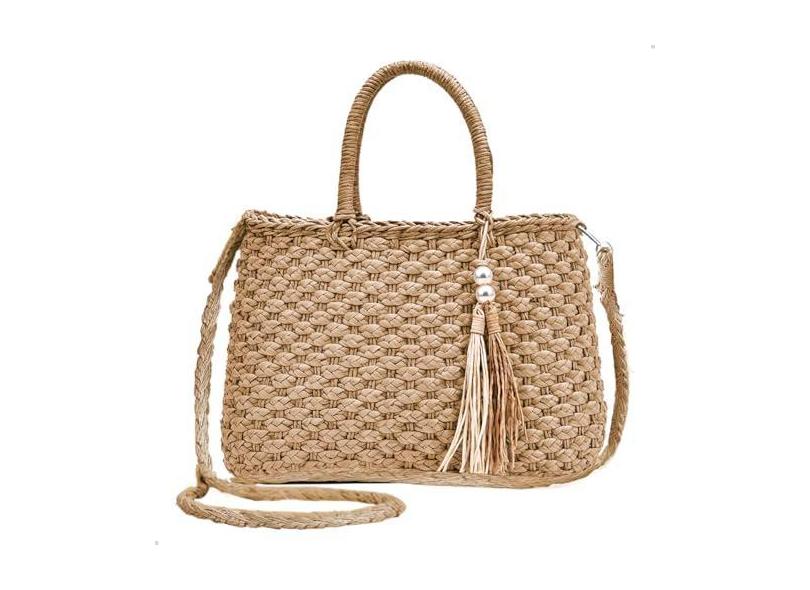 Bolsa De Palha Feminina Perola Alça Transversal Verão Acessório Praia (Bege)
