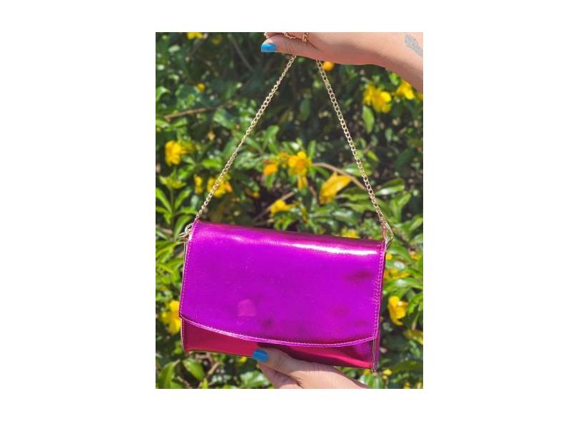 Bolsa Festa Metalizada De Ombro E De Mão Alça Transversal Corrente Rem