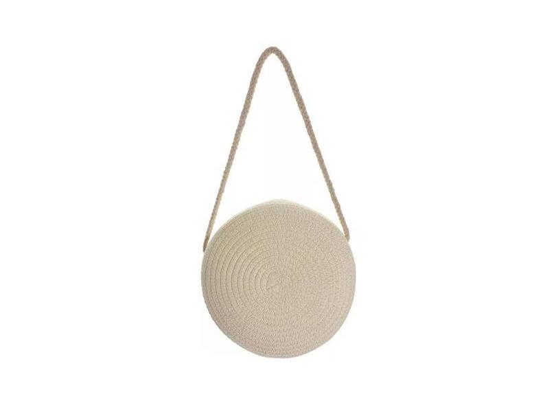 Bolsa Pequena Palha Sintética Redonda Alça Corda - Multimarcas, Off, W