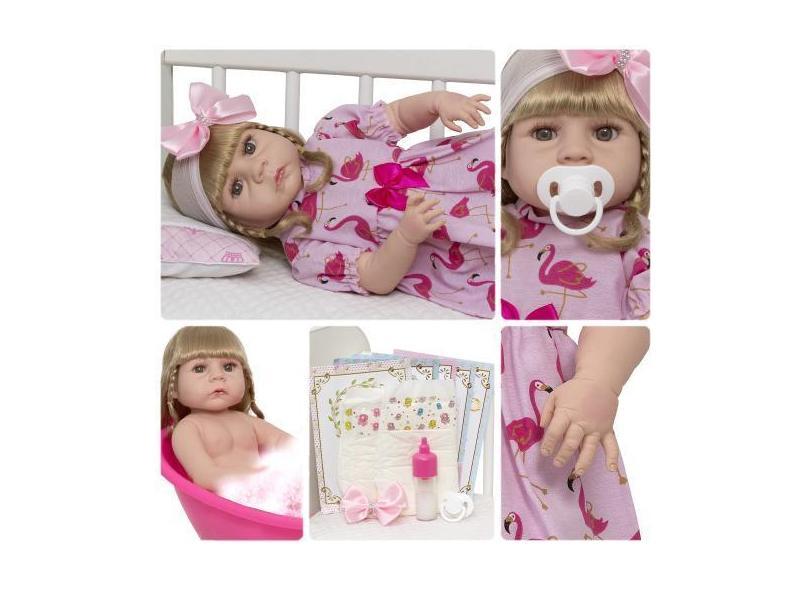 Bebe Estilo Reborn Menina Fofinha Vestido Flamingo Barata - Cegonha Re