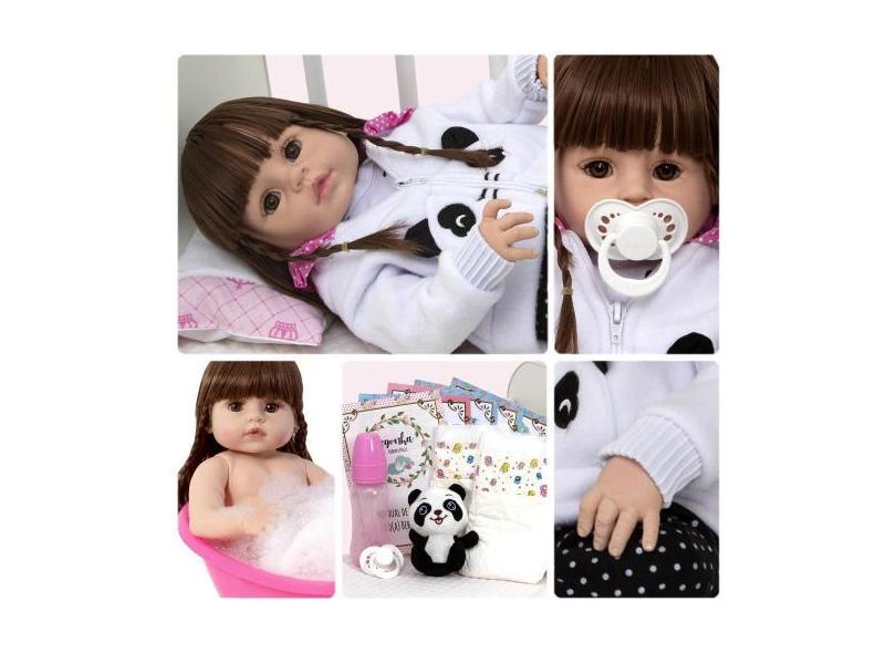 Bebe Reborn Menina Pandinha Realista 100% Silicone 13 Itens - Cegonha