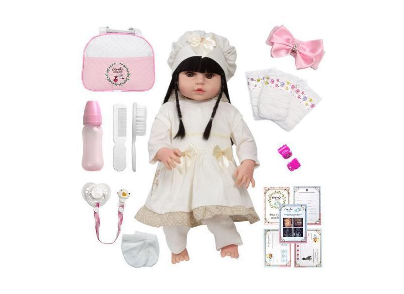 Boneca Bebe Estilo Reborn Menina Com Diversos Acessórios - Cegonha Reb