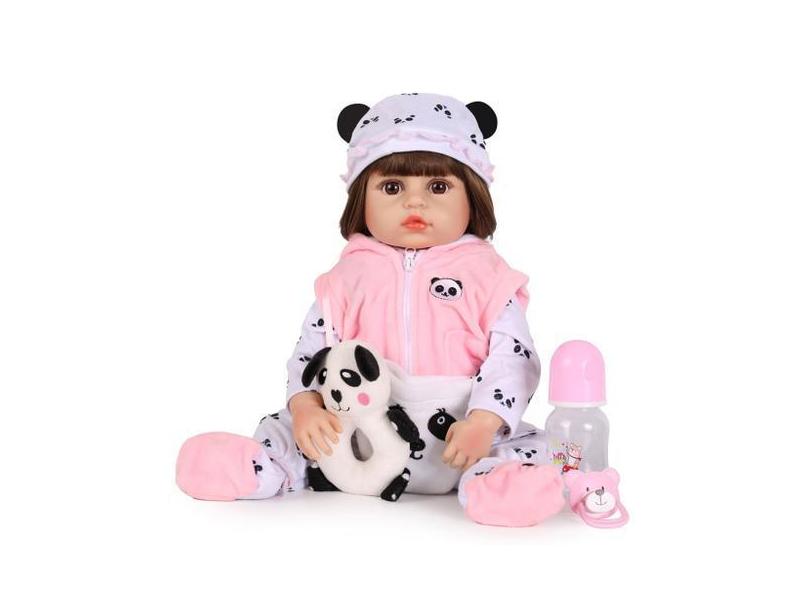 Boneca Bebê Reborn Panda Realista Brastoy Silicone Conjunto De Roupa C