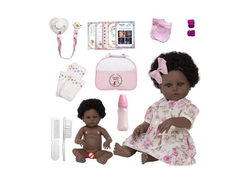 Boneca Bebê Reborn Princesa Negra Bolsa Maternidade Chupeta - Cegonha