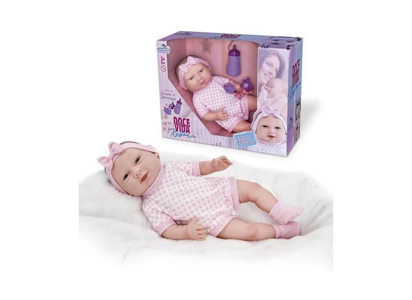 Boneca Doce Vida Reborn Bebê Com Chupeta E Mamadeira - Adijomar