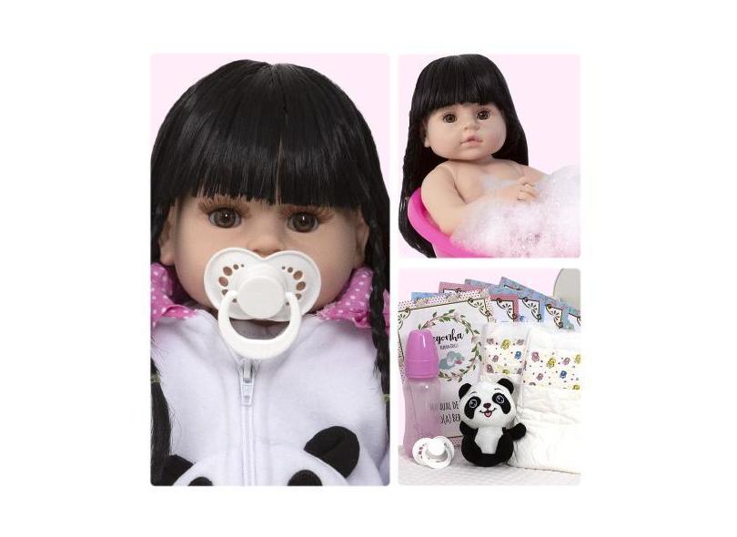 Boneca Estilo Reborn Princesa Panda Cabelo Escuro - Cegonha Reborn Dol