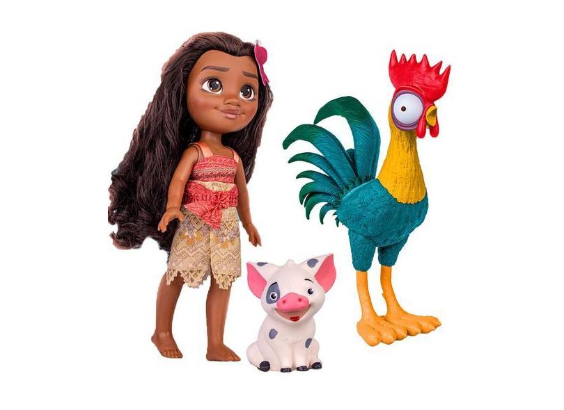 Boneca Moana E Porquinho Pua + Galo Hei Hei Disney Original - Cotiplás