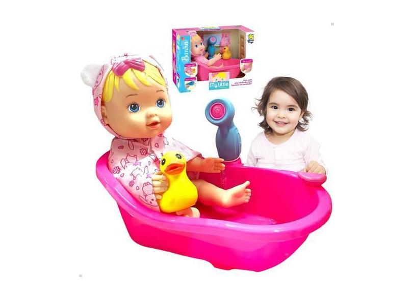 Boneca Neném Banho Duchinha C/ Água Banheira E Acessórios - Divertoys