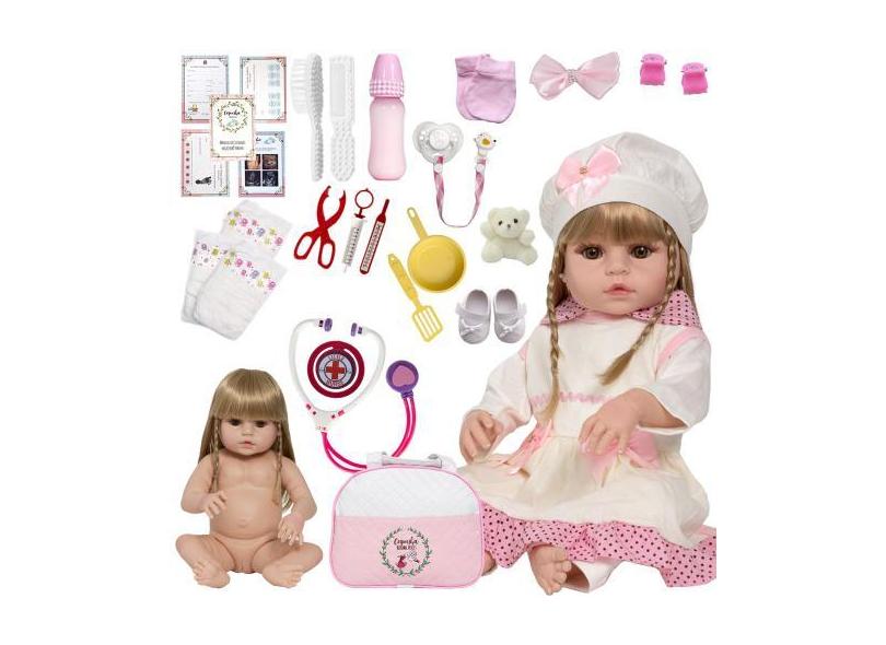 Boneca Reborn Baby Menina Loira Linda Realista 24 Itens Luxo - Cegonha