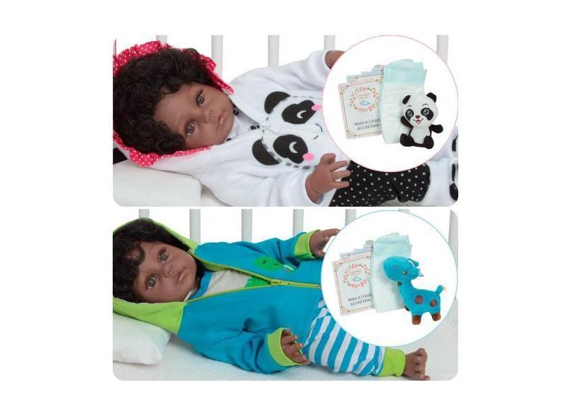 Boneca Reborn Bebê Gêmeos Negros Recém Nascidos Panda Jacaré - Cegonha