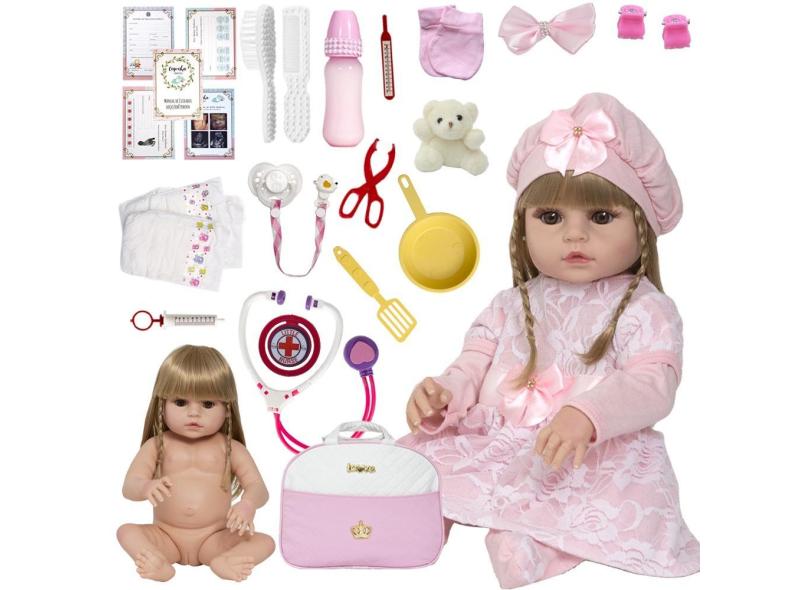 Boneca Reborn de Silicone Princesa Realista 24 Acessórios
