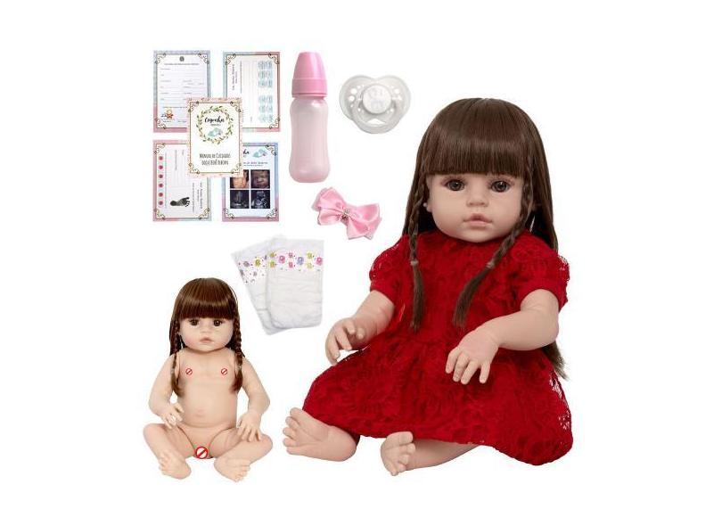 Boneca Reborn Menina Cabelo Longo Com Mamadeira Vários Itens - Cegonha