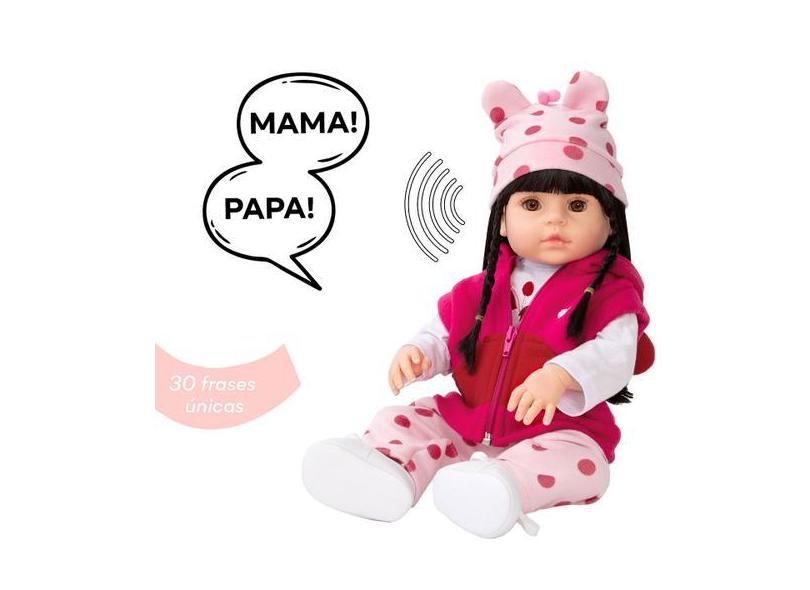 Boneca Reborn Menina Corpo de Vinil Roupa Girafa 30 Frases - Cegonha R