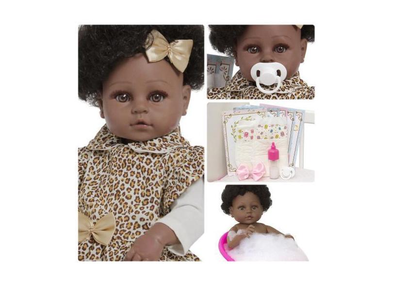 Boneca Reborn Negra 100% Vinil Siliconado Roupa De Oncinha - Cegonha R