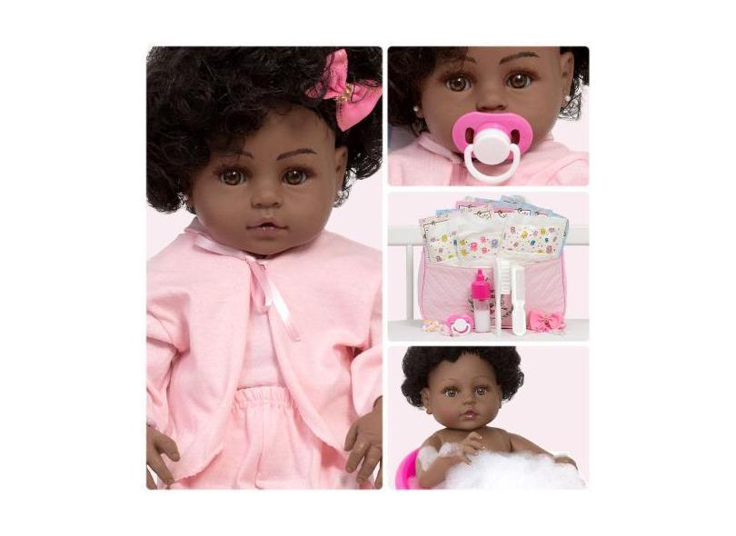 Boneca Reborn Preta Recém Nascida Pagão Rosa 21 Itens Barata - Cegonha