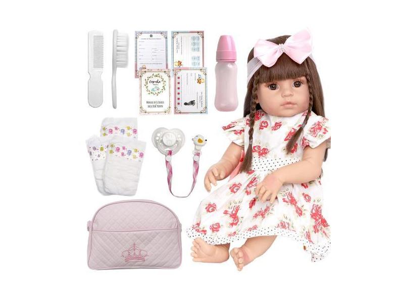 Boneca Reborn Realista Laura Cabelo Castanho Com 14 Itens - Cegonha Re