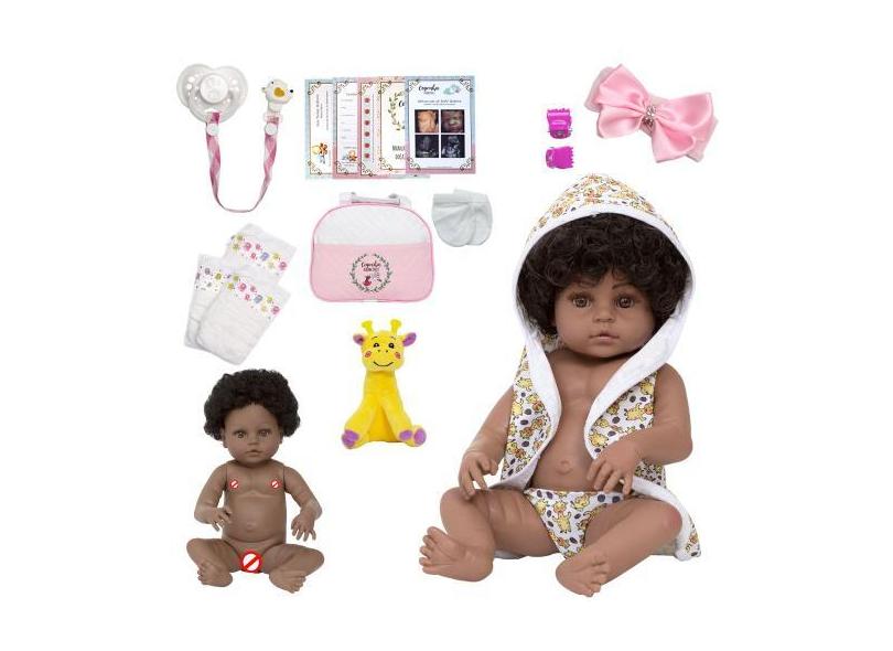 Boneca Reborn Recém Nascida Pretinha Girafa 21 Acessórios - Cegonha Re