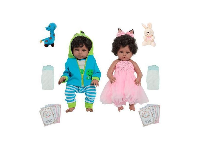 Boneca Tipo Reborn Gêmeos Realista Coelhinha e Jacarezinho - Cegonha R